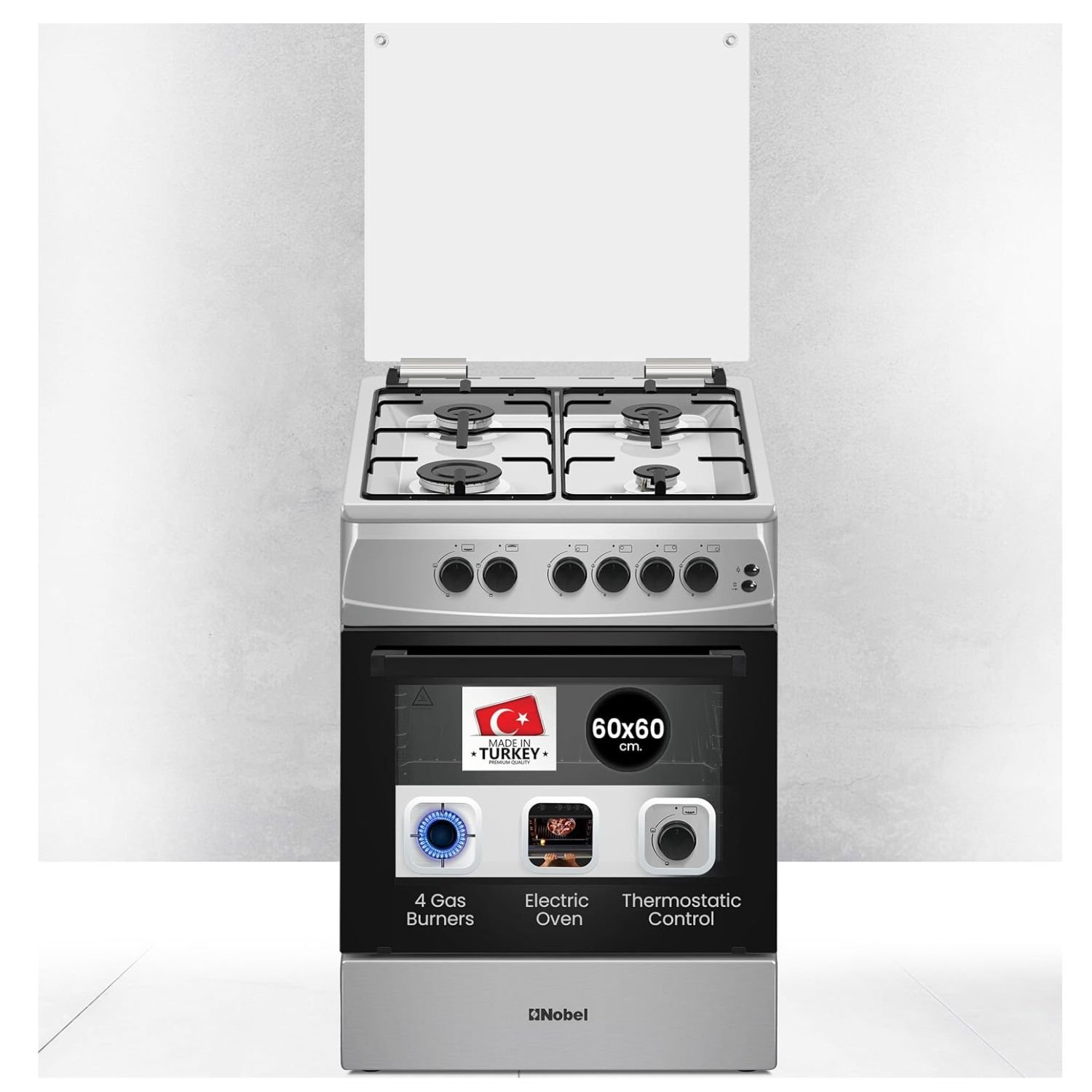 - Nobel designs this gas cooking range in a compact yet highly functional 60x60cm freestanding format that fits seamlessly into modern kitchens