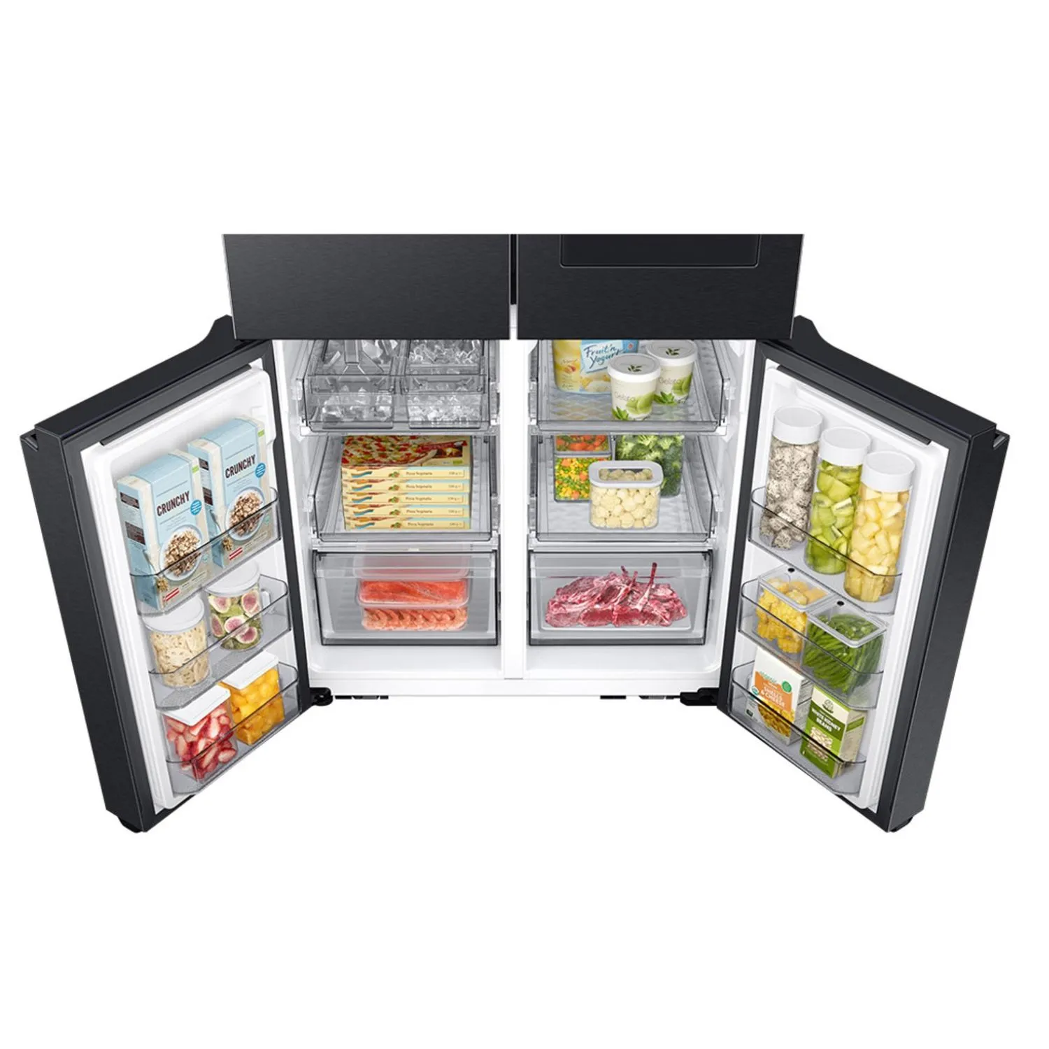 The RF65DB975E22AE offers flexible storage options to suit different needs. In particular, adjustable shelves and spacious door bins allow customization. Likewise, dedicated compartments help separate fresh and frozen items effectively. Additionally, smooth-glide drawers provide easy access. Consequently, storage becomes more user-friendly and efficient.